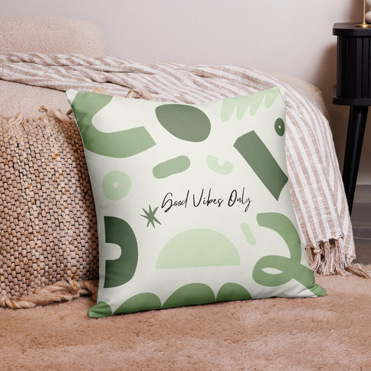 22" x 22" Spring Green & White Good Vibes Only Abstract Pillow