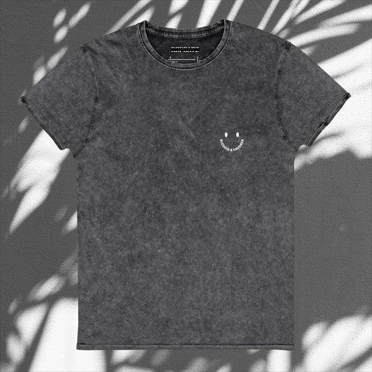 Blessed & Favored Smiley Graphic Print Denim T-Shirt
